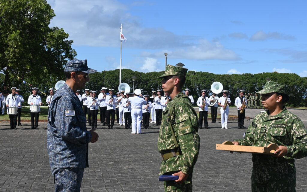 Posteriormente, el Señor Director de Formación Militar del Ministerio de Defensa Nacional, Mag. Diego D’ELIA, el Señor Director General de Personal Naval, Contralmirante Gustavo LUCIANI y el señor Director de la Escuela de Infantería de Marina, Capitán de Navío (CG) Sergio SAR firmaron el acta de aprobación de dicho curso.
