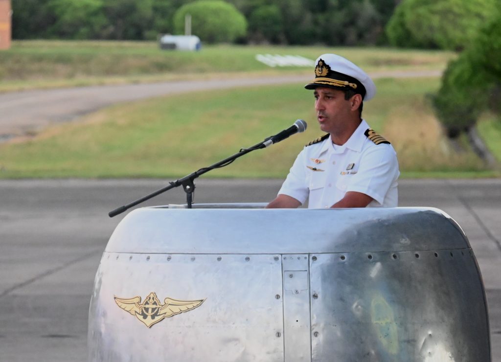 Finalizando la ceremonia el Señor Comandante de la Aviación Naval, Capitán de Navío (CG) Nicolás SANGUINETTI hizo uso de la palabra.